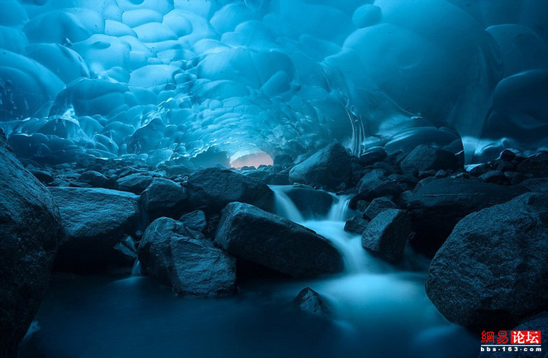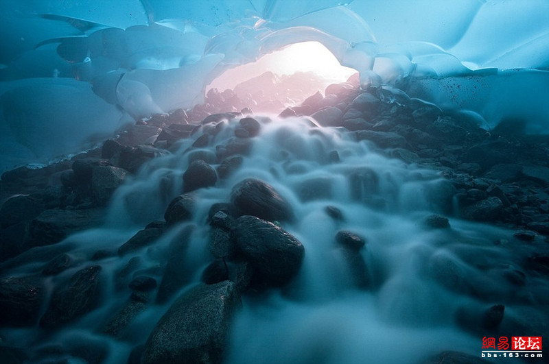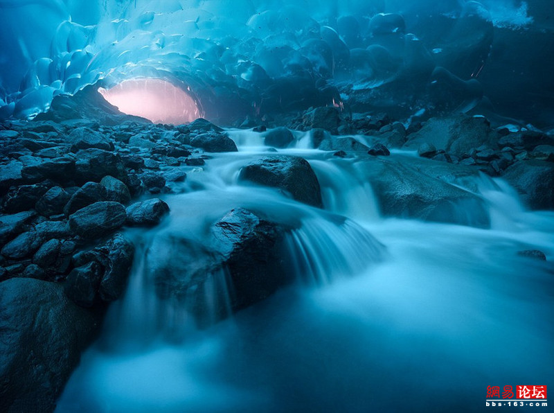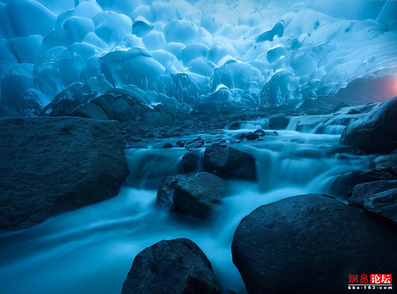 31歲的美國數學教師肯特每年都會親近大自然,探索各種奇觀。在過去數年間,他壹度深入偏遠的阿拉斯加州荒野,近距離記錄長達12英裡(約19千米)的門登豪爾冰川下冰穴裡連續消融和凍結的奇特景象,並繪制它們日益變化的過程。