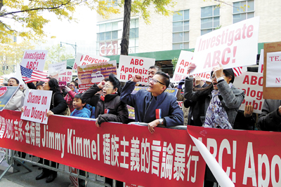 華人聚集ABC電視台外抗議吉米雞毛秀言論。