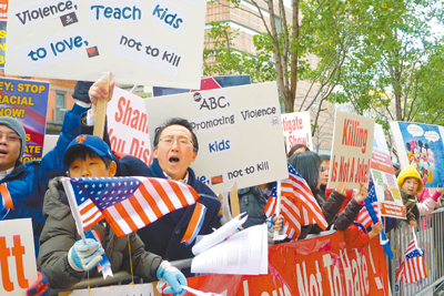 吉米雞毛秀「殺光中國人」言論繼續發酵,近百名華人8日聚集ABC電視台外抗議,指責吉米克梅爾(Jimmy Kimmel)致歉不夠誠意,除要求該電視台解雇吉米克梅爾外,還需在電視節目及網頁中公開道歉。抗議民眾並帶同子女參加,希望借此教育在美出生的下壹代面對不公,要勇敢發聲。