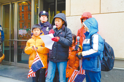 華裔兒童在ABC電視台門口宣讀以「我有壹個夢想」為題的抗議書。