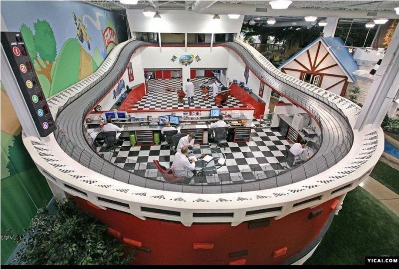 圖為美國賓夕法尼亞州,猶如游樂場的最酷辦公設計成玩具汽車競速場。