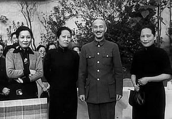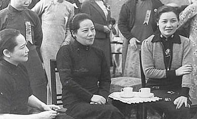 蔣介石與宋氏叁姐妹在壹起。左起:宋美齡、宋靄齡、蔣介石、宋慶齡