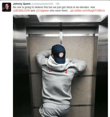 前幾日約翰尼-奎因剛剛被困浴室後“逃生”,可是禍不單行,沒過幾天這位美國帥哥又被困在了故障電梯中,他在自己的推特上也無奈的調侃道。“肯定沒人會相信,我現在又被困在電梯裡了。”而網友則在其推特幸災樂禍的回復“我想看看你這次怎麼破門而出。”上次奎因破門而出時是填充了紙漿的強化門,這次想從電梯裡壹躍而出,只能祈禱超人或是鋼鐵俠附體了。
