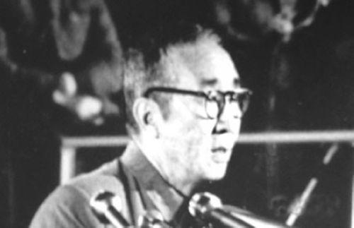 江騰蛟中將。江騰蛟是林彪、江青反革命集團的主犯,犯有參加組織領導反革命集團直接策劃謀害毛主席,發動武裝政變,陰謀推翻我國無產階級專政和社會主義制度的罪行,陰謀敗露後,又犯有密謀策劃跟隨林彪南逃廣州、另立中央、分裂國家的罪行。江騰蛟觸犯了《中華人民共和國刑法》第92條、第98條、第101條,必須依法懲處。江騰蛟在預審和歷次庭審中,對自己的罪行全部供認。圖為1980年庭審江騰蛟。