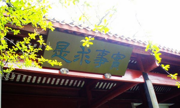 此外中共中央黨校的校訓“實事求是”的來歷也和岳麓書院有關。“實事求是”源於《漢書•河間獻王劉德傳》,1917年成為岳麓書院校訓,旨在教育學生從社會的實際出發,求得正確的結論。這壹校訓深刻影響了曾在此寓居求學的毛澤東。後來,“實事求是”被毛澤東賦予了新的時代精神,成為延安抗日軍政大學和中央黨校的校訓,也成為毛澤東思想的精髓和中共思想路線的內核,對中國的命運都產生了深遠影響。圖為岳麓書院講堂簷下“實事求是”匾,此匾為湖南工專1917年遷入岳麓書院辦學時,由校長賓步程所撰。