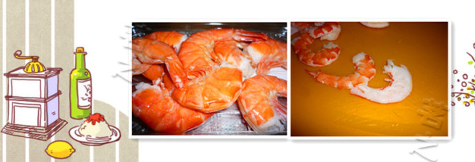 2、蝦蝦也備好,去線去殼小煮即熟、取出涼後對切備用。
