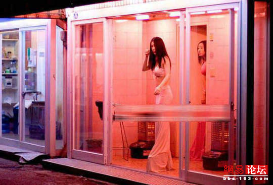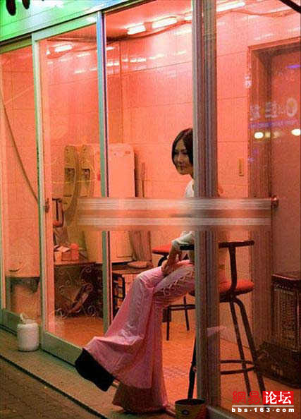 有一个很具有韩国特色的地方就是她们的鞋子,有一尺多高,不是高跟,是高底,让身材娇小的韩国女人一眼看上去有了一种欧美的高度。图:韩国红灯区的风尘女。