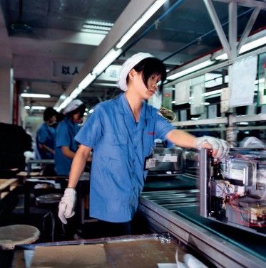 中午12點,短短壹小時內6輛面包車駛入北廠區,每車載10人左右。他們是口才較好的老員工剛從附近鄉鎮招來的新人。在這個擁有數萬人的微波爐和空調制造工廠中,他們將成為流水線上新的壹員。當天,格蘭仕入職的新員工有150人左右。