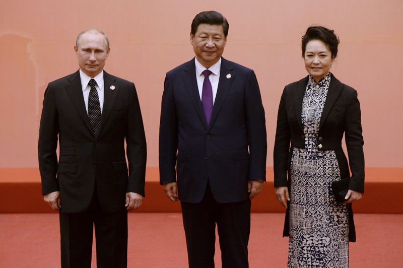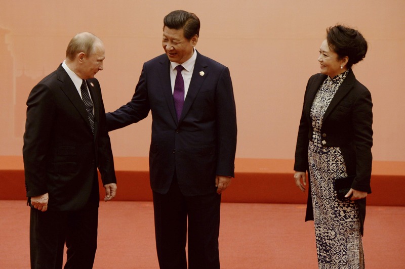 普京和習近平以及他的妻子彭麗媛壹起合影。