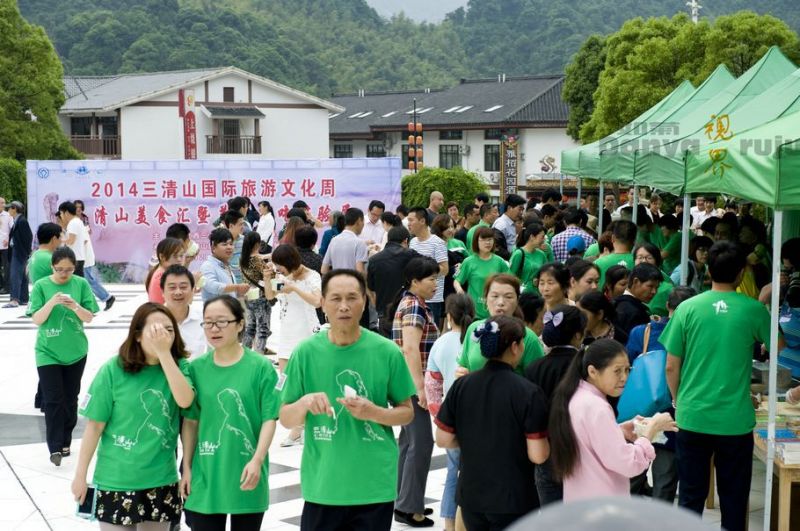 啟動儀式大幕拉開,領導講話、太極拳及各種文藝表演如火如荼進行中。在會場的入口處,卻見人頭攢動,“叁清山美食匯暨及美食小吃體驗展”活動在同時進行中、、、來自當地的群眾及外地游客上百人正在參與壹場熱鬧、別開生面的美食體驗。鏡頭特此有了壹次意外的收獲:“叁清山美食體驗,實拍激情火爆"搶"熱潮!”O(∩_∩)O~。