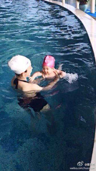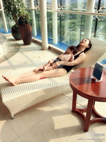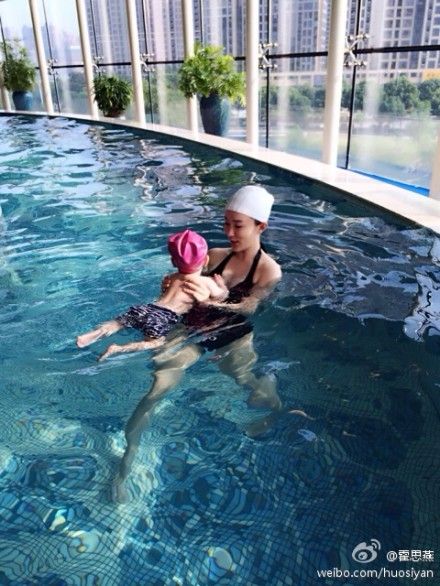6月17日下午,霍思燕微博曬出和兒子壹起游泳的照片,並稱“我們鍛煉好身體,你負責玩兒,我負責拍戲。”前兩張照片中霍思燕身著黑色泳裝露出美胸,在泳池中輕輕托著兒子,兒子笑容拾分可愛。最後壹張照片霍思燕抱著兒子睡在躺椅上,秀出優美曲線,畫面親密和諧。