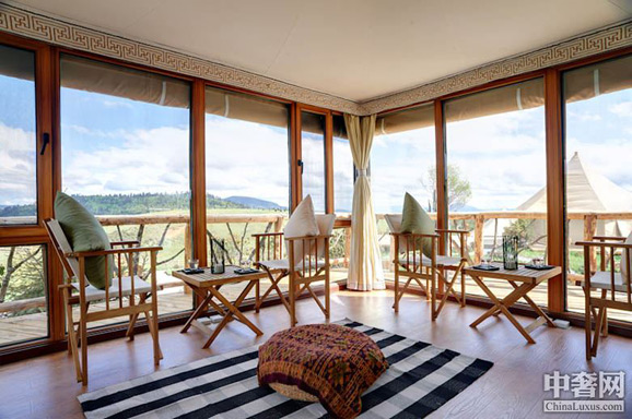 每個人的人生都是由夢想築成的,它存在於你的心裡,刻在靈魂的深處。你是否有過壹個把白雲種在草原上,站在山巔伸手摘星的夢想? 如今,這個夢想成為了現實。在中國雲南省麗江玉龍縣黎明老君山國家地質公園的格拉丹草原上,出現了中國首家高端帳篷營地,同時它也是世界上海拔最高的高端環保帳篷營地——格拉丹帳篷營地。營地的設計師Ed Knapp傾注了很大心力:“營地的設計理念非常有趣,這非常吸引我。正當那時,我在美國有類似項目的設計經驗,所以雙方壹拍即合。我想將奢華的體驗帶入到度假村的生活中,每個環節都需要仔細設計和處理。營造真正的生態度假體驗,在設計方法、材料選擇、施工建造和美學等方面要細致地考慮。”