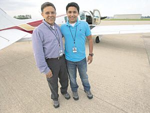 印第安納州居民,蘇爾曼父子倆6月19日離開家鄉前合影。他們當天開始原計劃30天完成的環球飛行。網絡圖片