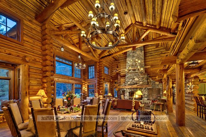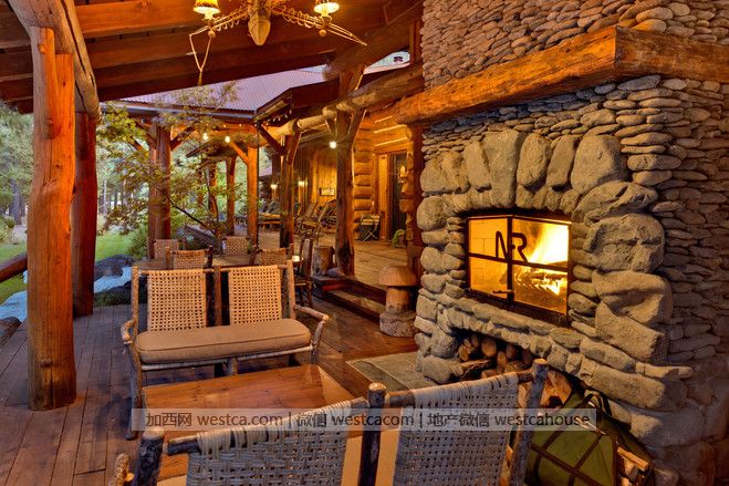 保羅說:“我們花了兩年時間設計,又花了兩年時間來修建這座住宅。”為了尋找理想的建屋之所,業主夫婦開著壹輛拖車在牧場上嘗試了八個不同的地方。房子最後於2000年完工。其中六個壁爐(包括圖中這個)的石材都取自牧場。“我們花了叁年時間,從小溪和峽谷中收集了許多石塊供泥瓦匠們選擇。”所用木材則來自蒙大拿州。保羅說,修建門窗的木材都是在牧場上切割的。手工鑿出的橫梁來自牧場上壹座19世紀80年代的谷倉。
