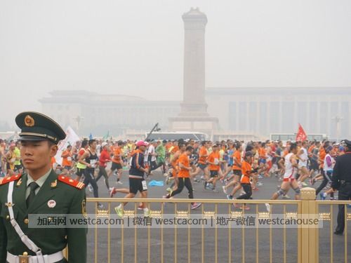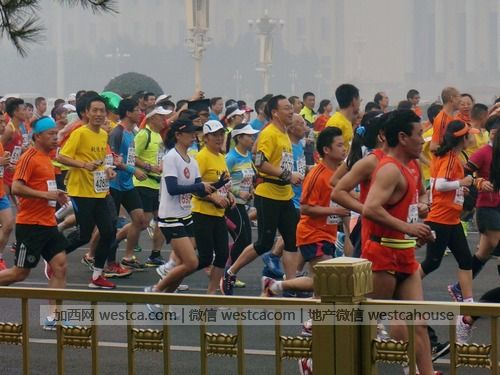 這場馬拉松賽以北京天安門廣場為出發點,沿途40多公裡,終點在奧林匹克公園。北京時間2014年10月19日8時左右,在北京“著名”的霧霾天氣中,主持者尚未宣布起跑,數萬來自伍湖肆海的男女老少已經迫不及待地開拔出發。
