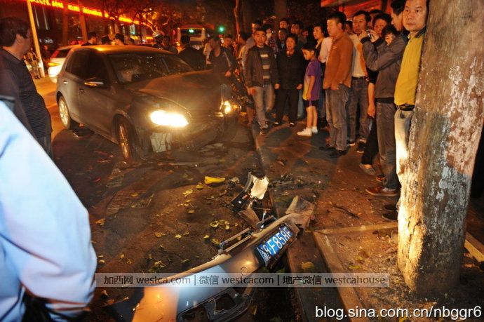 10月30日傍晚5點20分左右,寧波江北育才路繁景花園附近路段發生壹起慘烈車禍,壹輛銀色高爾夫轎車接連撞上2輛電動車和3輛自行車,造成1人死亡4 人受傷。有目擊者稱肇事男司機約40歲,先是撞了1個人,可能想逃逸有些慌張,又接連撞了車和路人。目前肇事駕駛員已被控制,事故原因正在進壹步調查當 中。