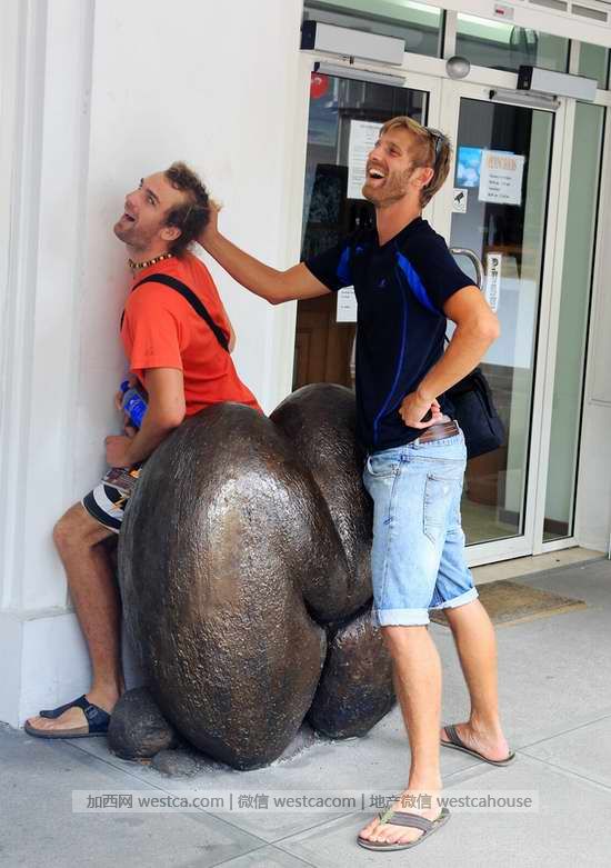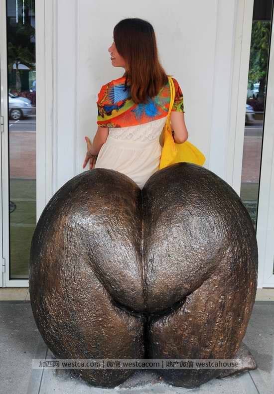 海椰子現在簡直成了塞舌爾的標志,海椰子造型的雕塑、繪畫作品層出不窮,就連海關入境章也以海椰子為圖案。人們面對如此私密的圖形也見怪不怪,反而是擺出各種造型熱情合影。