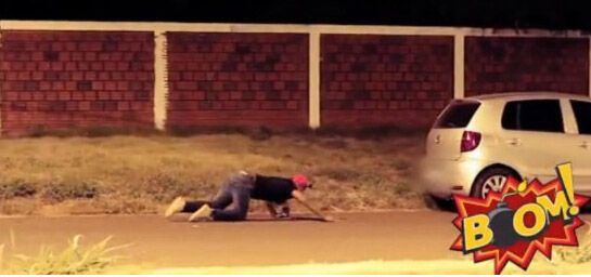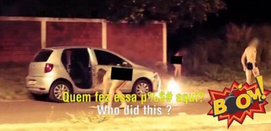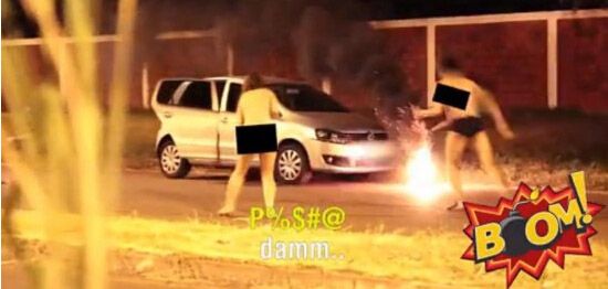 近日,网络上出现了一个视频,几名男子发现一男两女在深夜街头车震,于是其中一名男子偷偷靠近该车辆,在车头位置点燃烟花后又猛拍车门,车中的人惊慌中打开车门四处逃窜,其中两名女子均浑身赤裸。