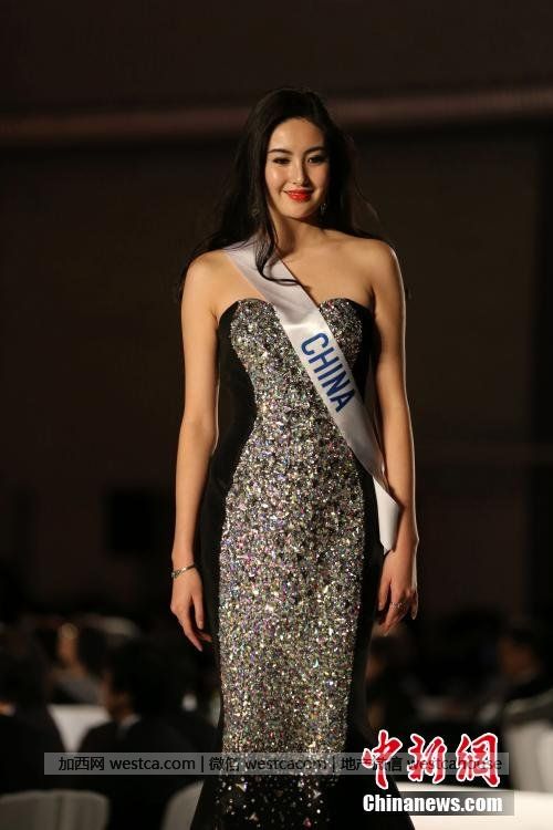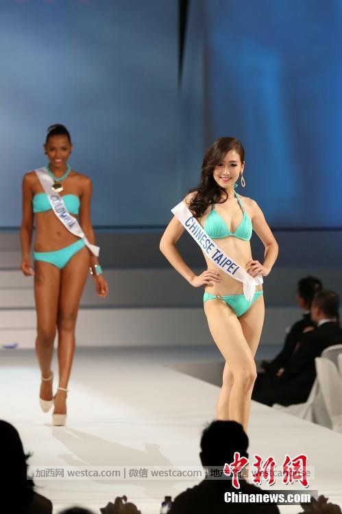 圖為中國佳麗亮相大賽。中新社發 高越 攝
