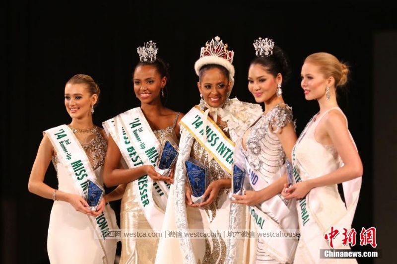 作為世界叁大女子選美賽事之壹的2014國際小姐選美大賽(Miss International Beauty Pageant )總決賽,11月11日在日本東京舉行。73位來自各個國家和地區的佳麗在此競逐當年國際小姐桂冠。圖為獲得此次大賽第叁名的泰國佳麗在泳裝秀環節表現出色。中新社發 高越 攝