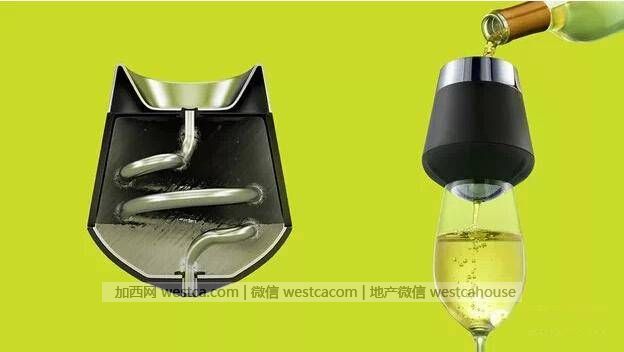 中间部分为液态,放在冷冻室内冷冻,这样,在倒葡萄酒时就能瞬间为酒品降温,超级方便。