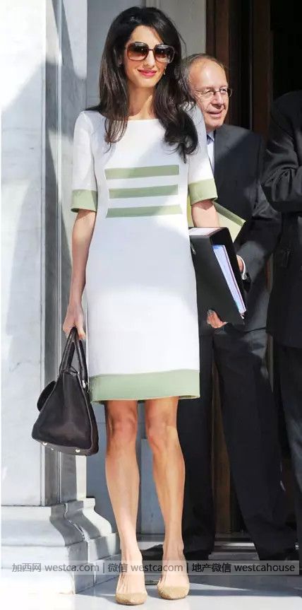 在男人主宰的律師行業裡,Amal Alamuddin 簡直就是萬綠叢中壹支優雅的玫瑰。她的職業裝莊重但不似尋常 OL 衣著的呆板,堪稱職業女性的穿衣范本。