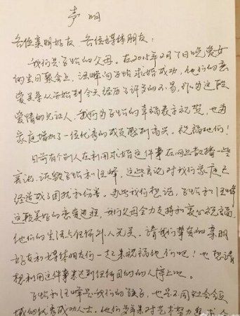 章子怡父母親筆信祝福女兒戀情