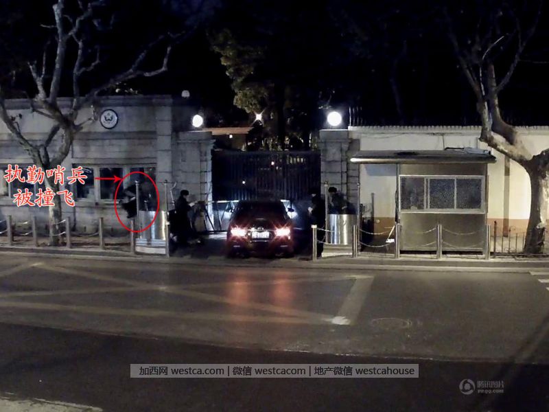 2015年2月12日晚21時44分,壹名男子駕駛車牌照為“閩E.BX537”的黑色豐田汽車,沿上海烏魯木齊中路由北向南行至美國駐滬領事館大門時,突然加速轉向沖闖領館大門。