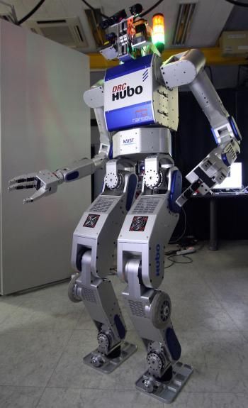 這些機器人要面臨的,將遠遠不是打掃地板、假扮寵物之類簡單的活兒,而是要越過各類障礙物、打開房門、甚至駕駛汽車,並且大部分是自動進行的。獲勝者的隊伍將獲得200萬美金的獎勵。圖為韓國科技先進研究院(KAIST)的機器人HUBO。