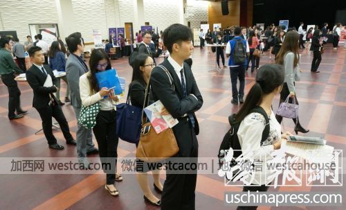 由CCC,即Chinese Career Center在南加州大学举办的这场招聘会吸引了来自南加各高校的留学生及中英双语人才,个别学生甚至为了这场招聘会特别从美东赶了过来。CCC创始人王昊王表示,来本届招聘会征才的中美企业供32家,其中1/3是国际化大企业。