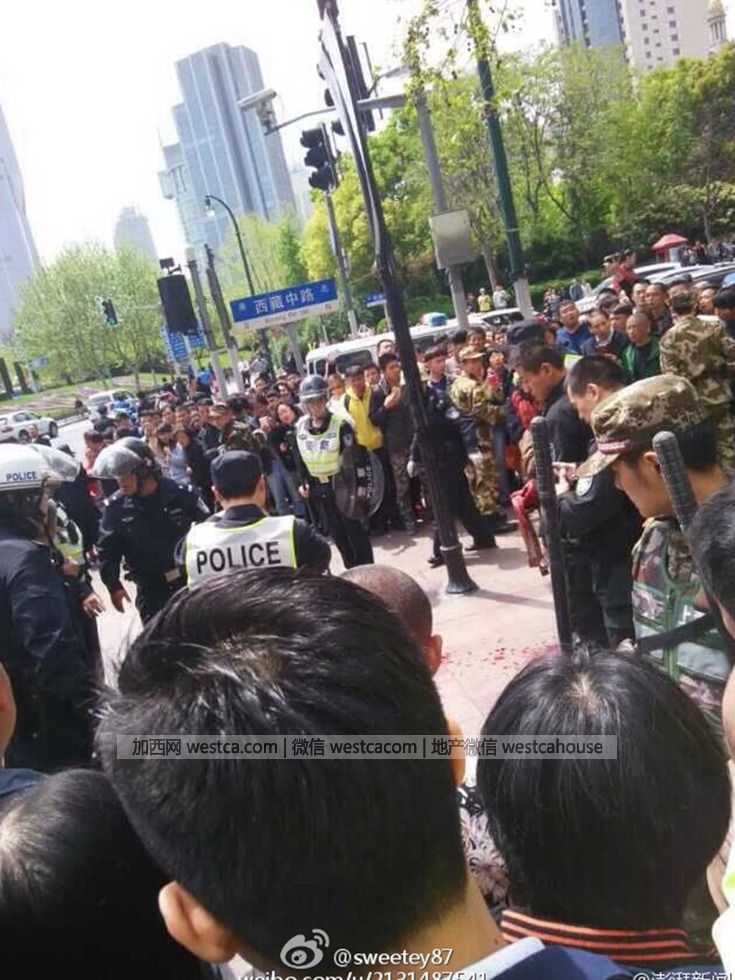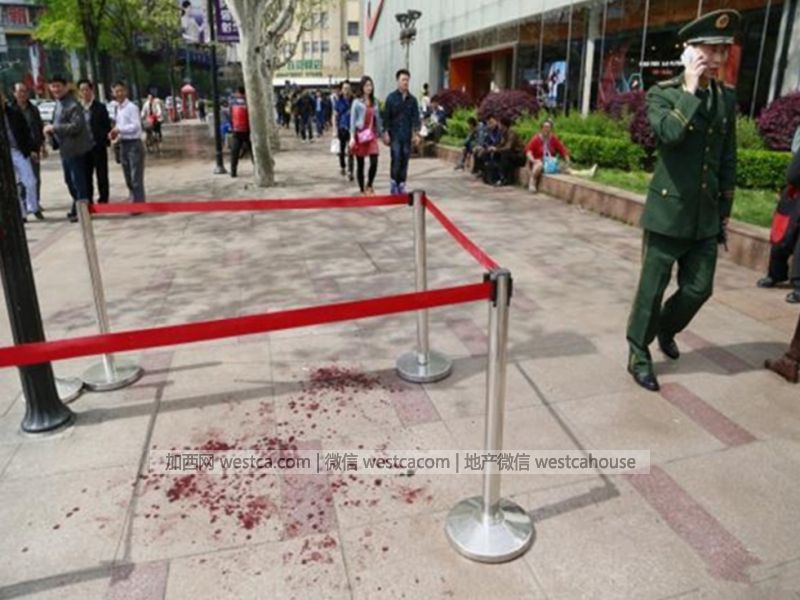 目擊者於女士表示,當時兩名年輕男子扭打在壹起,她注意到其中壹人手裡有刀。壹名路過的外國人用外套抽打那名持刀者,持刀者跑開,然後沿著西藏中路北向南方向行走,在路上又刺傷壹名交通協管員。目擊者稱協管員傷勢嚴重,在百聯世茂國際廣場門口有大量血跡,血跡延續有幾拾米。