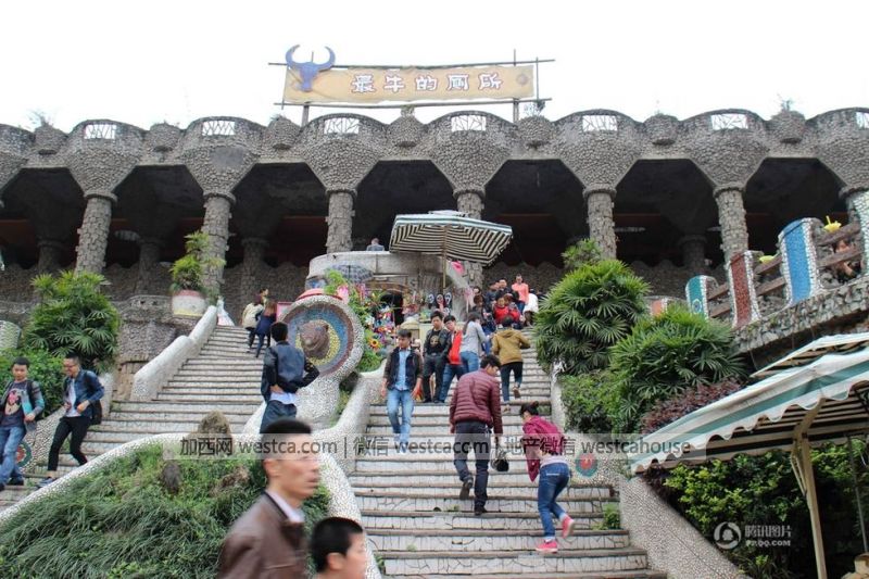 整個廁所的建造絕對是獨出心裁,若大的廁所通堂敞亮,壹律沒有窗戶,肆周全靠自然通風,廁所非常人性化,各處通道處還栽有不少的竹子,可容納2000名游客同時如廁。