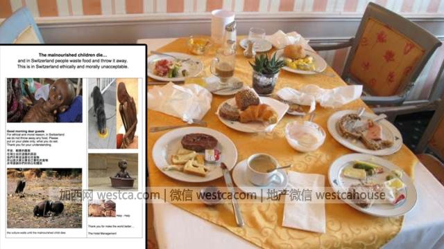 瑞士旅游勝地盧森壹間肆星級飯店,因對中國客人享用自助餐時的浪費行徑忍無可忍,上月起在餐桌加設中英雙語告示牌,並展示非洲饑童圖片,懇求客人不要浪費。