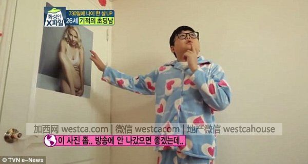 他的臥室門後貼著好萊塢女演員Scarlett Johansson的海報,他表示他希望有壹天能遇到這位漂亮的女孩。