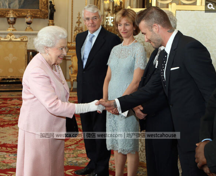 騰訊體育6月23日訊 貝克漢姆在今日來到白金漢宮接受英國女王的召見。