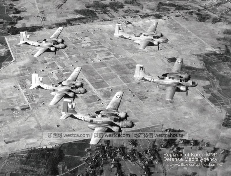 1950年, 美国远东空军部队的轰炸机编队飞行。