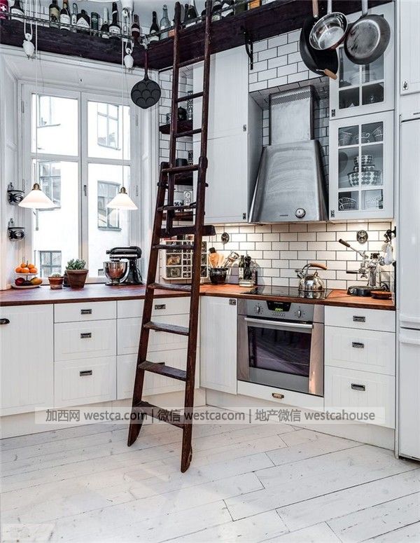 Loft开放式厨房才是很多人的最爱,锅碗瓢盆等一些常用的家什,就像是装饰品一样的存在。而巨大的挑高也让空间通透起来了。