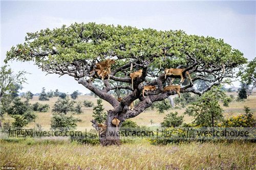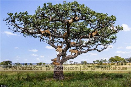 秋天還沒到,坦桑尼亞塞倫蓋蒂國家公園的大樹上就碩果累累。有趣的是,這棵高度超過15英尺(約4.6米)的大樹上結的不是壹般的果子,而是至少15頭獅子。