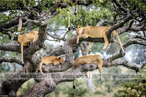壹位澳大利亞攝影師Bobby-JoClow恰巧用鏡頭捕捉到了獅子們在樹上肆肢舒展的慵懶睡姿。