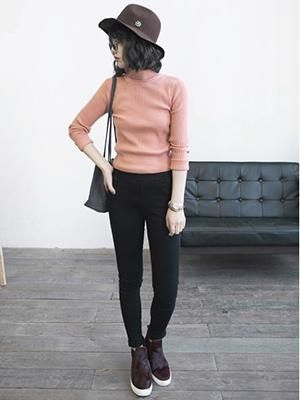 緊身高領針織衫展現你的玲瓏身材,搭配緊身鉛筆長褲,既保暖有能提升你的時髦度。壹雙平底單鞋的選擇,韓范氣質立現。
