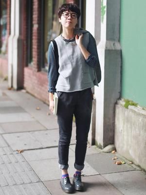 純色寬松衛衣內搭襯衫,初冬保暖選擇,搭配休閒長褲以及系帶單鞋,清新妹子穿出隨性感。