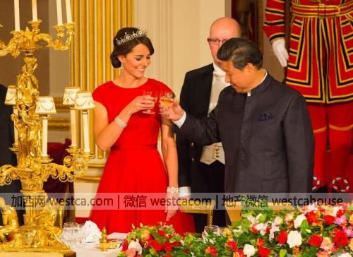 10月20日,習近平抵達倫敦,開始對英國進行國事訪問,英國女王伊麗莎白贰世及菲利普親王為習大大和彭麻麻舉行盛大國宴。嫁入皇室後首次出席國宴的凱特王妃,身著壹襲“中國紅”長裙亮相,很是驚艷。