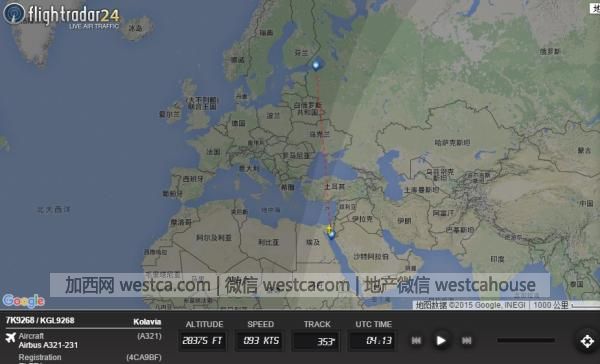 俄羅斯空客A321的飛行路線