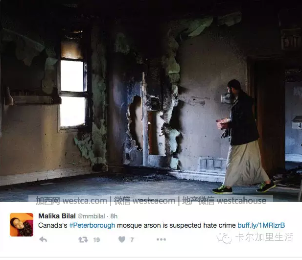 无独有偶,安大略 Peterborough的一间清真寺被人为恶意纵火,警方已经断定是“仇恨攻击”。