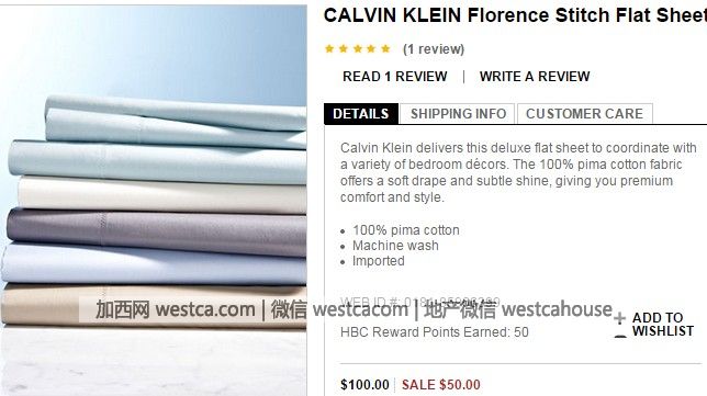 3.Calvin Klein精品床單(5色可選):特價$50,原價$100