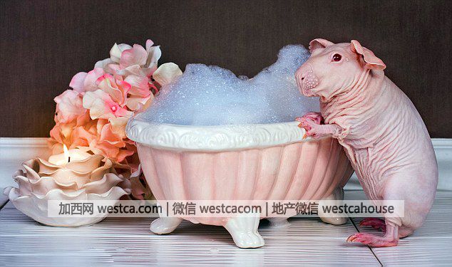 據英國《每日郵報》1月13日報道,近日,美國弗吉尼亞州攝影師艾琳•博尼拉(Erin Bonilla)為寵物界新寵“鮑德溫豚鼠”拍攝了壹組沐浴照片。照片清新脫俗,惹人喜愛。