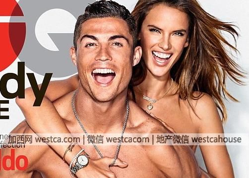 在《GQ》雜志的封面照中,C羅半裸出鏡,展示著健碩的肌肉。在身邊,他的搭檔、名模阿萊桑德拉-安布羅西奧也是赤裸上陣,大膽露肉。