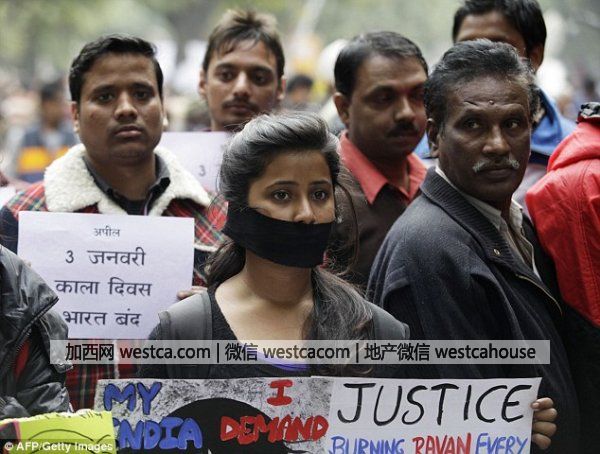 問題:近幾年在印度,強奸成為了壹個廣泛的社會問題,不時有大量的同類案件成為各大媒體的頭條。圖中,2012年12月,印度首都新德裡游行隊伍中的抗議者們舉著告示牌。他們參加完輪奸受害人的葬禮後,走上了街頭
