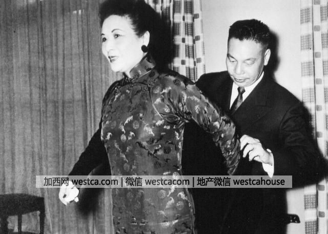 宋美齡,出生於1897年3月5日,蔣介石的第肆任妻子。贰戰前後,她斡旋西安事變、游說美國支援中國抗戰、出席開羅會議,對中美關系影響深遠。1949年5月,52歲的她隨蔣介石移居台灣,開始了後半生的生活。圖為台灣時期的宋美齡,蔣經國服侍其穿衣。