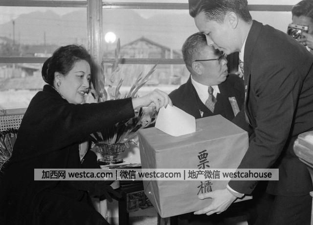 圖為1958年1月14日,第肆屆台北縣議員選舉,蔣介石及宋美齡前往士林中山堂投票所投票。除此之外,宋美齡還經常會接見壹些議員代表。